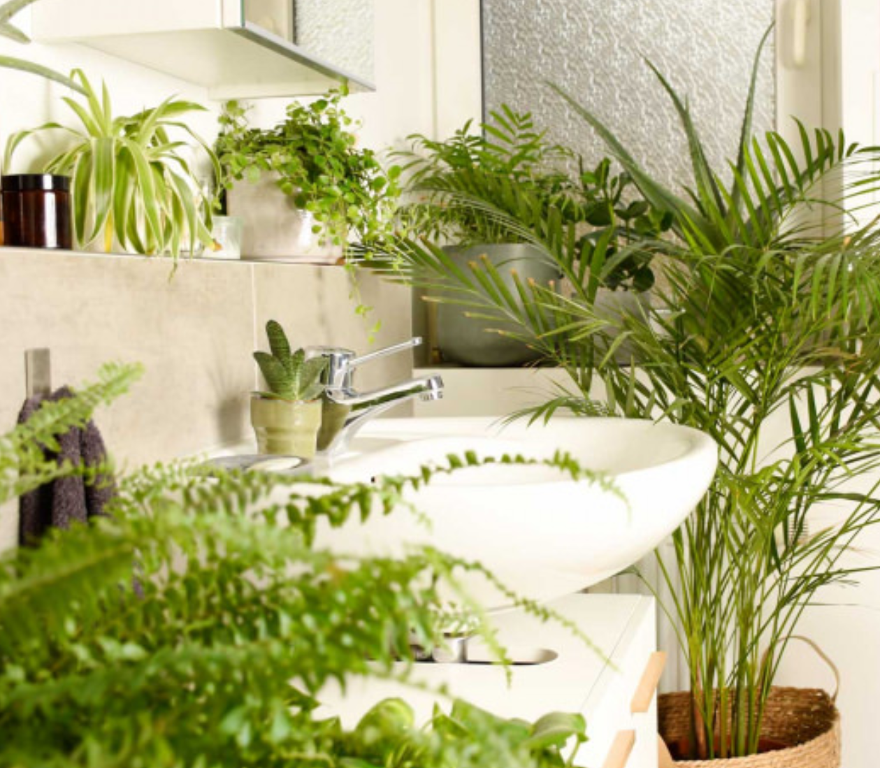 Une déco de salle de bains jungle urbaine