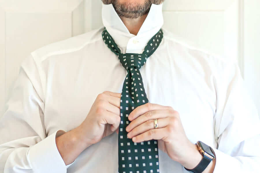 Si vous débutez, vous trouverez peut-être plus facile de commencer par le nœud de cravate simple, qui, comme son nom l’indique, est facile à faire. Il convient aussi bien aux cols classiques qu’aux cols américains.